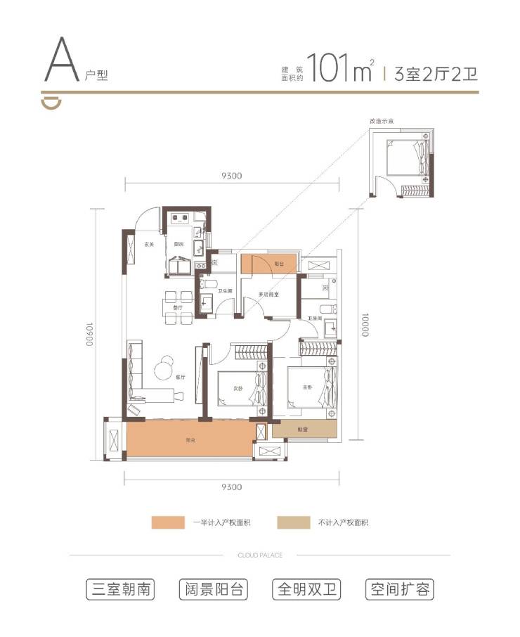 改善型三居室全龄户型★✿,聚焦品质生活需求★✿,空间布局更加合理★✿,功能分区更加明确★✿,居住舒适度更高★✿。户型采用大面宽★✿、短进深设计★✿,最大化提升了采光面★✿,让室内每个空间都能享受充足的阳光★✿。客厅轩敞明亮★✿,与南向阳台相连★✿,阳台宽度充足★✿,可打造为休闲区★✿、健身区或亲子互动区★✿,满足全家多元需求★✿。客厅与餐厅一体化设计★✿,形成开阔的公共活动区域★✿,无论是家庭聚会还是朋友宴请★✿,都能从容应对★✿。主卧套房设计★✿,配备独立卫生间和衣帽间★✿,私密性强★✿,彰显品质;主卧内设置了舒适的睡眠区和休闲区★✿,夫妻二人可以在这里放松身心;独立卫生间干湿分离★✿,配备了高端卫浴设施★✿,提升使用舒适度★✿。次卧空间宽敞★✿,采光通风良好★✿,可作为儿童房★✿,房间内设置了学习区★✿、游乐区和储物区★✿,满足孩子的成长需求;第三个卧室可作为长辈房或客房★✿,房间内设置了防滑地面★✿、扶手和充足的采光★✿,同时预留了书桌和休闲座椅★✿,方便老年人阅读或休息★✿。厨房采用开放式或半开放式设计★✿,与餐厅相连★✿,增强了空间的互动性★✿,配备了高端节能家电★✿、嵌入式储物柜和充足的操作台面★✿,让烹饪成为一种享受;餐厅内配备了高档餐桌椅★✿,可容纳八人就餐★✿,适合全家聚餐和朋友聚会★✿。此外★✿,户型还设置了独立的书房★✿,书房内配备了书桌★✿、书架和休闲座椅★✿,可作为家庭的学习空间或工作空间★✿,也可改造为茶室★✿、健身区等★✿,灵活性强★✿。